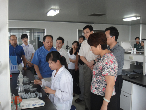 调研会后,专家检查组一行对我公司的胶塞生产现场,空调净化系统,工艺制水系统,QA、QC实验室,成品及原辅材料仓库等进行了现场检查,并重点检查了公司的生产工艺及包材质量标准执行情况。公司董事长华国平、总经理华一敏陪同现场考察,对领导、专家的问题一一进行专业解答。